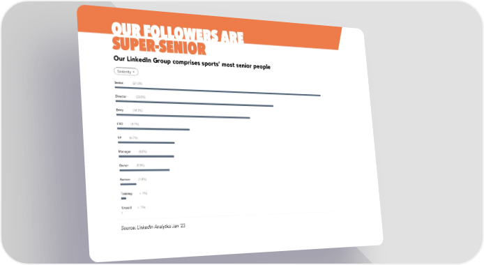 OUR FOLLOWERS ARE SUPER-SENIOR Our LinkedIn Group comprises sports’ most senior people Source: LinkedIn Analytics Jan ‘23