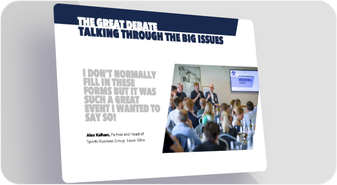 The STA Group Deck Page 18 Page 20THEGREAT DEBATE TALKING THROUGH THE BIG ISSUES I DON'T NORMALLY FILL IN THESE FORMS BUT IT WAS SUCH A GREAT EVENT I WANTED TO SAY SO! Alex Kelham, Partner and Head of Sports Business Group, Lewis Silkin